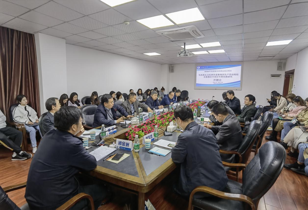 2021年4月10日上午,孙振东教授主持的2020年度国家社科基金重点项目“马克思主义经典作家教育同生产劳动相结合思想在中国百年的实践研究”开题报告会在田家炳教育书院403会议室举行。出席开题报告会的专家有中国浦东干部学院郑金洲教授、陕西师范大学郝文武教授、华南师范大学董标教授、湖州师范学院舒志定教授、山西大学侯怀银教授、海南师范大学易连云教授、东北师范大学杨兆山教授、华南师范大学肖绍明教授、bw必威西汉姆联官网田晓伟教授。bw必威西汉姆联官网处吕刚武老师和项目组成员参加了开题报告会。