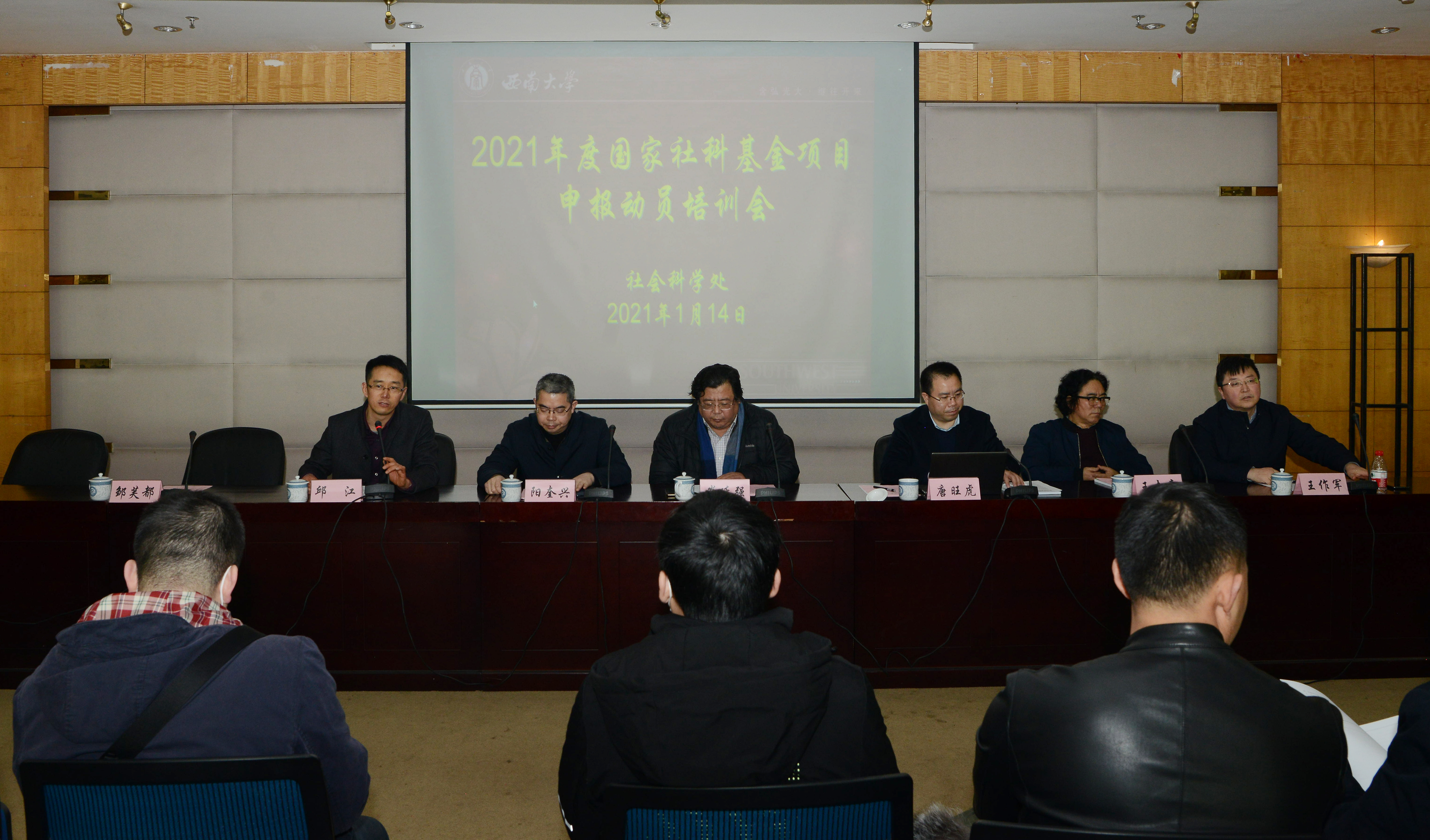 为全面贯彻落实党的十九大和十九届二中、三中、四中、五中全会精神,准确把握2021年度国家社科基金项目申报的选题精神和论证规范,提高项目申报质量,学校于1月14日在田家炳教育书院八楼会议室举办了“2021年度国家社科基金项目申报动员培训会”。出席动员培训会的有bw必威西汉姆联官网副校长崔延强教授、重庆市社科联副主席阳奎兴同志、重庆市社科规划办主任唐旺虎同志、bw必威西汉姆联官网经济管理学院王志章教授、历史文化学院邹芙都教授、bw必威西汉姆联官网处王作军副处长,学校从事人文bw必威西汉姆联官网研究的广大科研人员、拟申报2021年度人文社科基金项目的科研人员、文科单位主管科研的领导和科研秘书共300余人参加了会议。会议由社科处处长邱江教授主持。