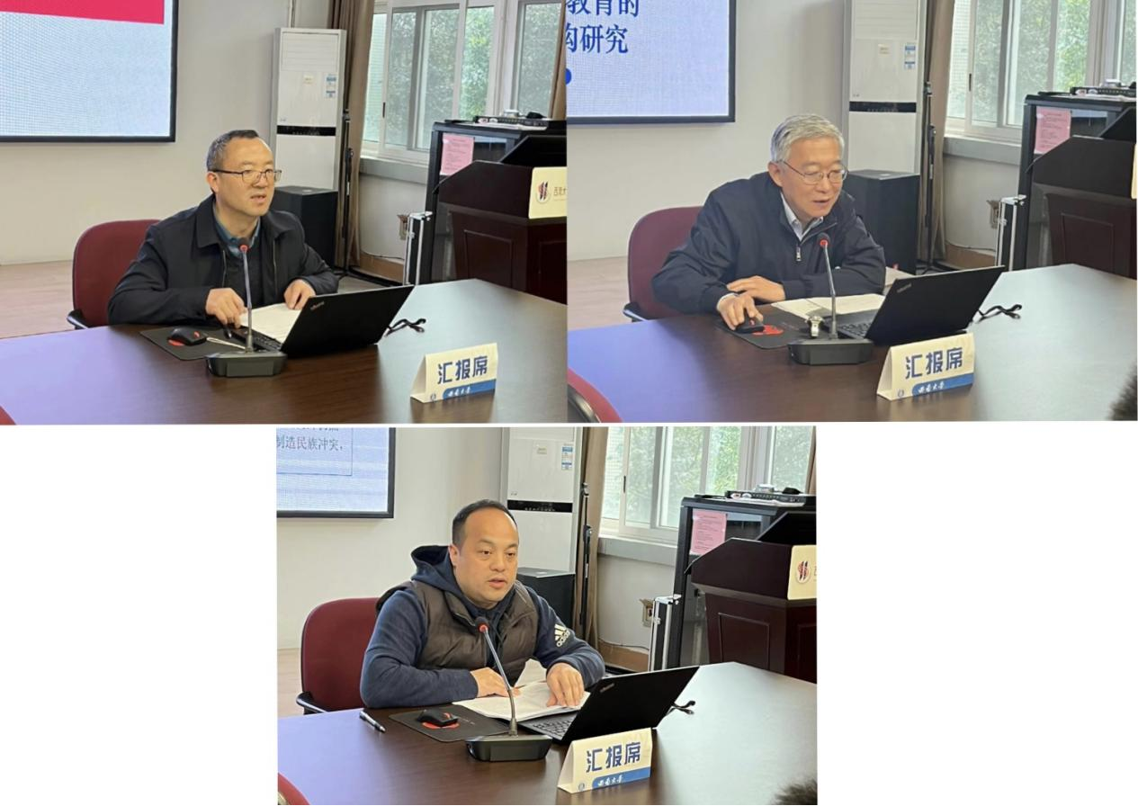 会上,王作军副处长宣读了立项通知,分别是陈立鹏教授主持的《中华民族共同体意识教育的心理机制研究》、么加利教授主持的《中华民族共同体意识教育的知识体系与课程建构研究》、田晓伟教授主持的《铸牢中华民族共同体意识教育政策研究》。