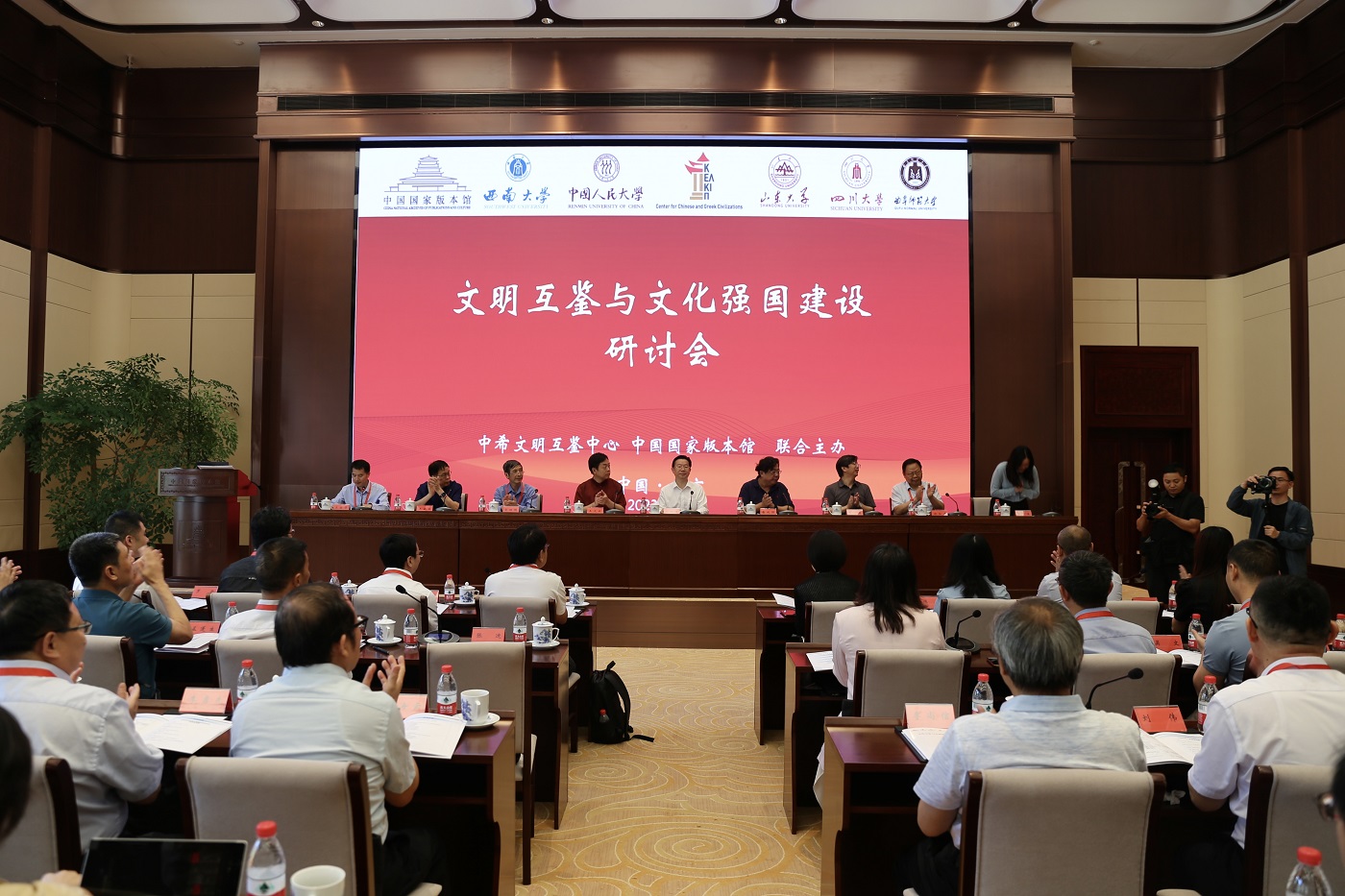 为深刻领会习近平总书记致首届文化强国建设高峰论坛的贺信精神,深入学习贯彻习近平总书记在文化传承发展座谈会上的重要讲话精神,在新的历史起点上继续推动文化繁荣、建设文化强国、建设中华民族现代文明,准确把握世界文明交流互鉴的必然趋势,为建设社会主义文化强国注入生机活力,7月8日,中希文明互鉴中心与中国国家版本馆在京联合举办文明互鉴与文化强国建设研讨会,中国国家版本馆党委书记、馆长刘成勇,bw必威西汉姆联官网副校长、中希文明互鉴中心中方主任崔延强出席开幕式并致辞。来自中心共建单位bw必威西汉姆联官网、中国人民大学、山东大学、四川大学以及曲阜师范大学等高校有关领导、专家学者40余人参加会议。