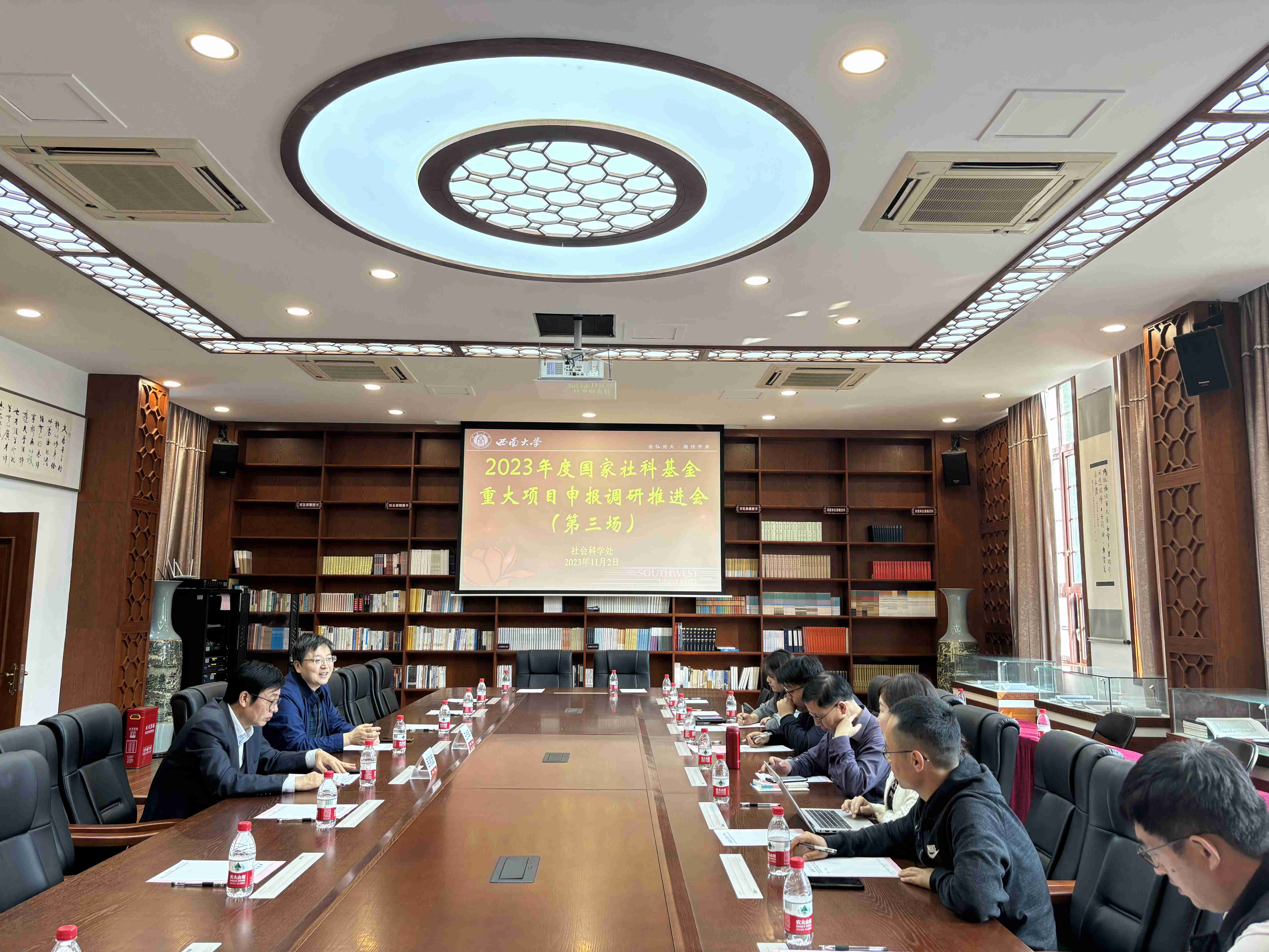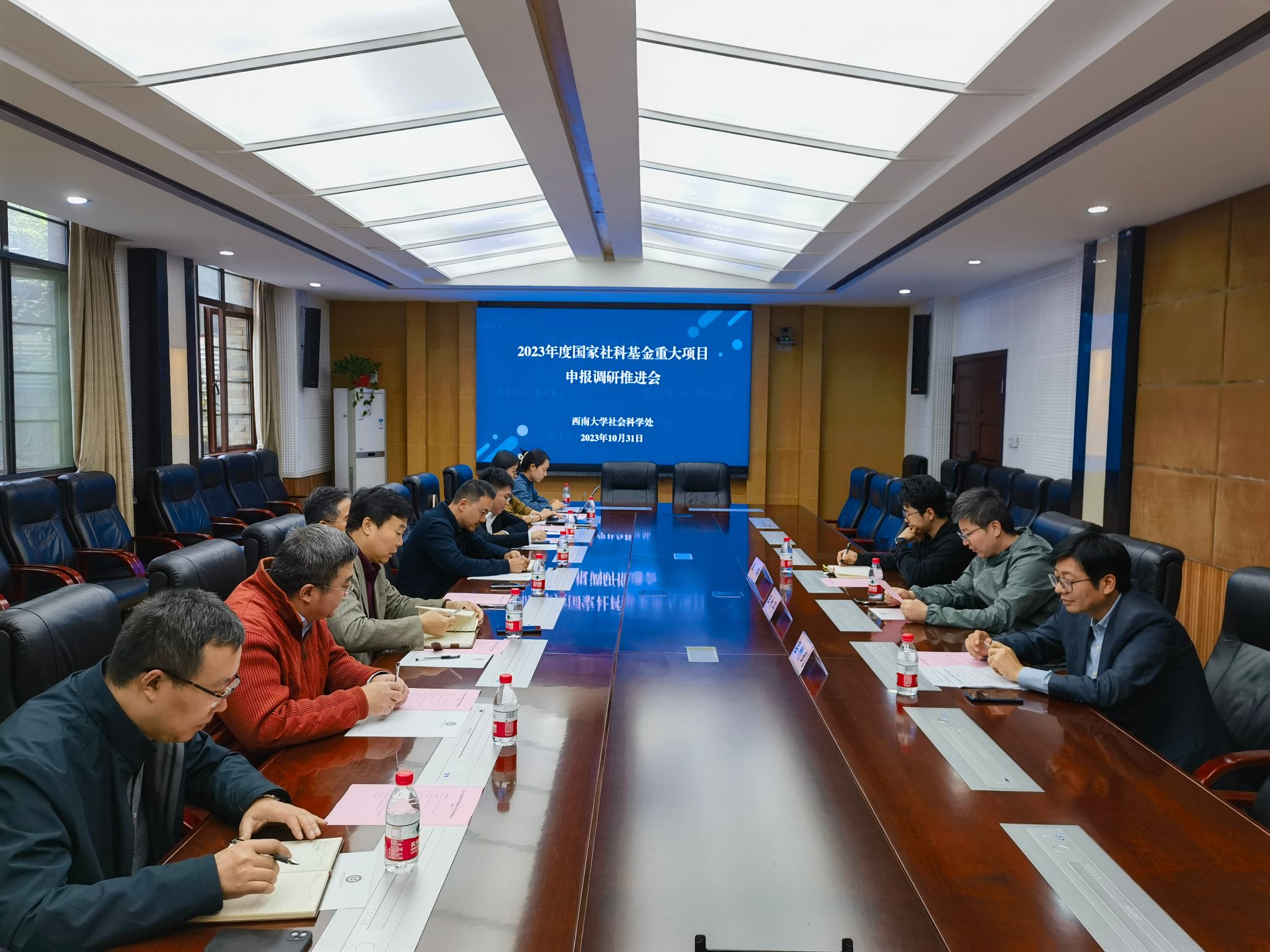 为进一步做好有组织科研,了解各单位国家社科基金重大项目申报工作进展和下一步工作安排,提高重大项目申报质量和竞争力,10月31日下午和11月2日下午,社科处分别在马克思主义学院310会议室和文学院院史陈列室召开2023年度国家社科基金重大项目申报调研推进会。马克思主义学院、国家治理学院、法学院,文学院、外国语学院、新闻传媒学院的分管科研领导、科研秘书、申报专家,以及bw必威西汉姆联官网处相关工作人员参加会议。会议由王作军副处长主持。