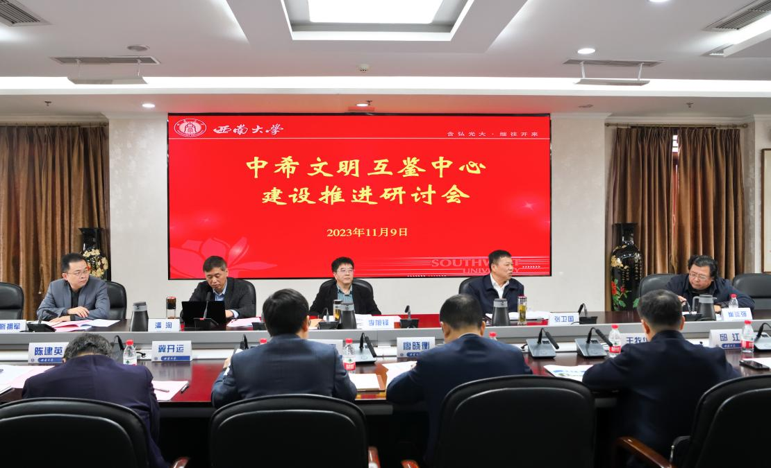 为贯彻落实党中央决策部署,高标准高质量建设中希文明互鉴中心,11月9日上午,学校在行署楼第五会议室召开中希文明互鉴中心建设推进研讨会。校党委书记李旭锋,党委副书记、校长张卫国,校党委副书记潘洵,中希文明互鉴中心中方主任崔延强,相关职能部门负责人,二级教学科研单位负责人及专家代表参加会议。会议由校党委副书记潘洵主持。