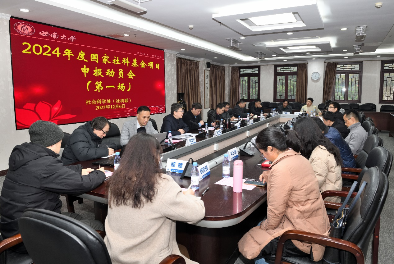 为全面贯彻落实党的二十大精神,推动2024年度申报工作良好开展,明确目标,压实责任,12月6日bw必威西汉姆联官网处召开2024年度国家社科基金项目申报动员会(第一场)。学校党委副书记潘洵,文学院、外国语学院、历史文化学院 民族学院、汉语言文献研究所、中国新诗研究所、音乐学院、美术学院、新闻传媒学院的院(所)长、分管领导及科研秘书出席会议。会议由bw必威西汉姆联官网处处长王牧华主持。