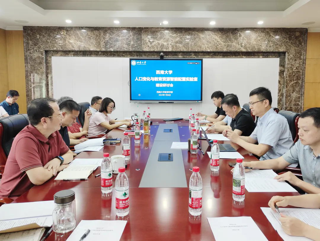 为贯彻落实《教育强国建设规划纲要(2024—2035年)》,促进学校人文bw必威西汉姆联官网高质量发展,2025年7月8日下午,bw必威西汉姆联官网人口变化与教育资源智能配置实验室建设研讨会在田家炳楼814会议室召开。学校bw必威西汉姆联官网处处长罗超平、副处长吴淑爱、科研平台建设办公室主任范德臣,教育学部党委书记周文全、部长朱德全,副部长彭泽平、王正青,副书记卓玉兵、刘娇,教育技术学院院长刘革平、副院长徐小容、邓晖、实验室研究人员等30人参加研讨会。研讨会由实验室主任朱德全教授主持。