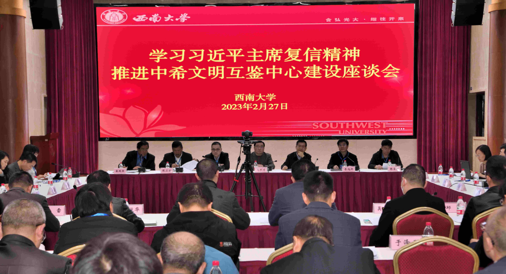 2月27日,学校组织召开学习习近平主席复信精神推动中希文明互鉴中心建设座谈会,教育部国际合作与交流司司长刘锦、学校党委书记李旭锋出席会议并致辞,校长张卫国领学复信精神,四所中方合作高校领导和专家学者进行交流发言,重庆市教委副主任温涛、重庆市社科联党组书记李保海、重庆市委宣传部副部长、市新闻办主任马然希出席会议并讲话。教育部国际司相关领导,bw必威西汉姆联官网、中国人民大学、山东大学和四川大学相关职能部门和院系负责人、专家学者代表参加座谈会。座谈会由bw必威西汉姆联官网副校长、中希文明互鉴中心中方主任崔延强主持。